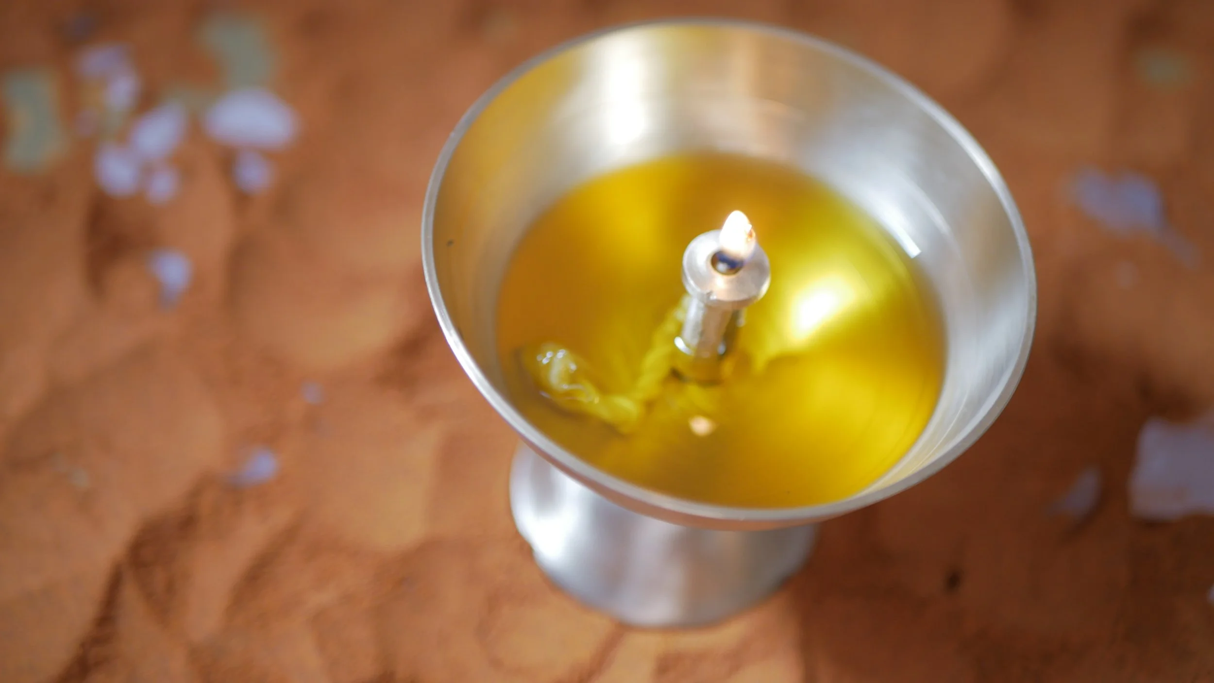 To begin this simple ritual you simply need an oil lamp burner, also known as a diya, cotton wicks and an oil of your choice. Mustard or sesame oil is the preferred choice for this - or you can also use ghee.